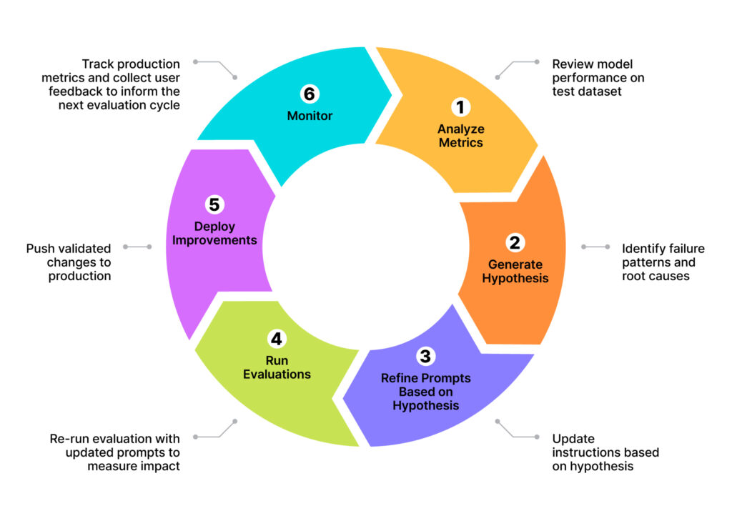 - Refine prompts based on hypothesis: Update system instructions and prompts based on insights.
